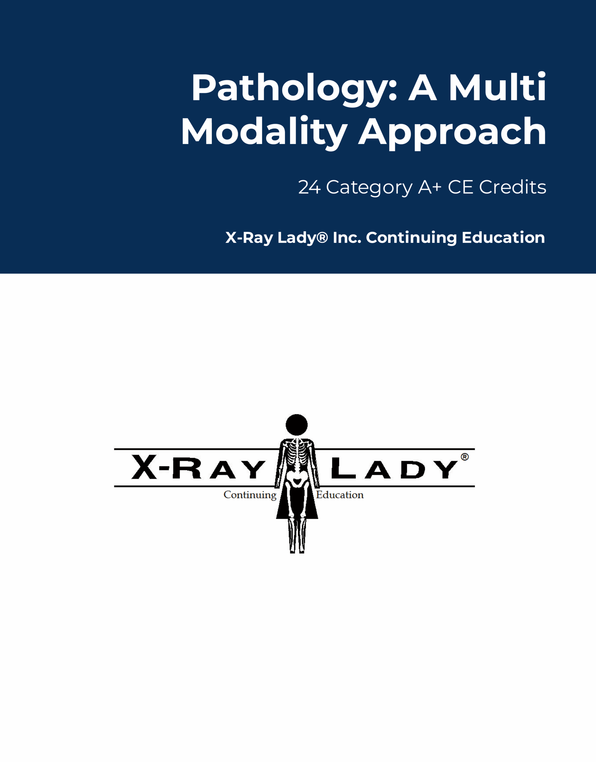This course is based on the book Pathology: A Multi Modality Approach, by Jeana Fleitz, M.Ed., RT(R)(M)(ARRT)™. The book/PDF is 407 pages long and 8.5 x 11 inches in size. This book has 11 pt font and 1.5 line spacing.